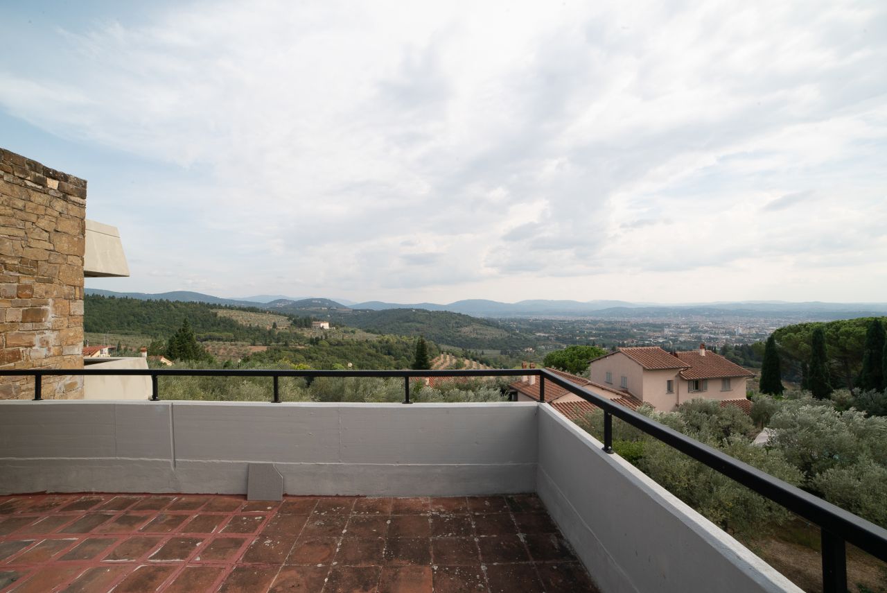 Prima collina di Careggi : Splendida Villa anni 80' di circa 350 mq suddivisa su tre livelli con bellissimi terrazzi panoramici e giardino esclusivo. La proprietà di grande impatto è unica nel suo genere architettonico in stile moderno. Lo spazio esterno è organizzato in parte a piazzale in pietra per i posti auto e giardino con prato e ulivi. Per ogni livello della villa ci sono due ampi terrazzi che affacciano su Firenze e i suoi monumenti. Al piano terra la zona giorno è composta da una grande cucina abitabile, il salone doppio e il bagno di servizio. Il primo piano è composto da uno studio un grande bagno e due camere matrimoniali che insistono sui terrazzi con delle viste mozzafiato. Conclude la proprietà l'appartamento indipendente al piano terra (di circa 160 mq) disposto su un unico livello e composto da una grande zona giorno con camino, la cucina abitabile con accesso al loggiato esterno, due camere matrimoniali, due grandi bagni, lavanderia, ripostiglio e cantina. Giardino di circa 1500 mq. Doppio ingresso carrabile ideale per 2 nuclei familiari. Termosingolo. Per info 339.87.60.313 RICHIESTA EURO 900.000,00